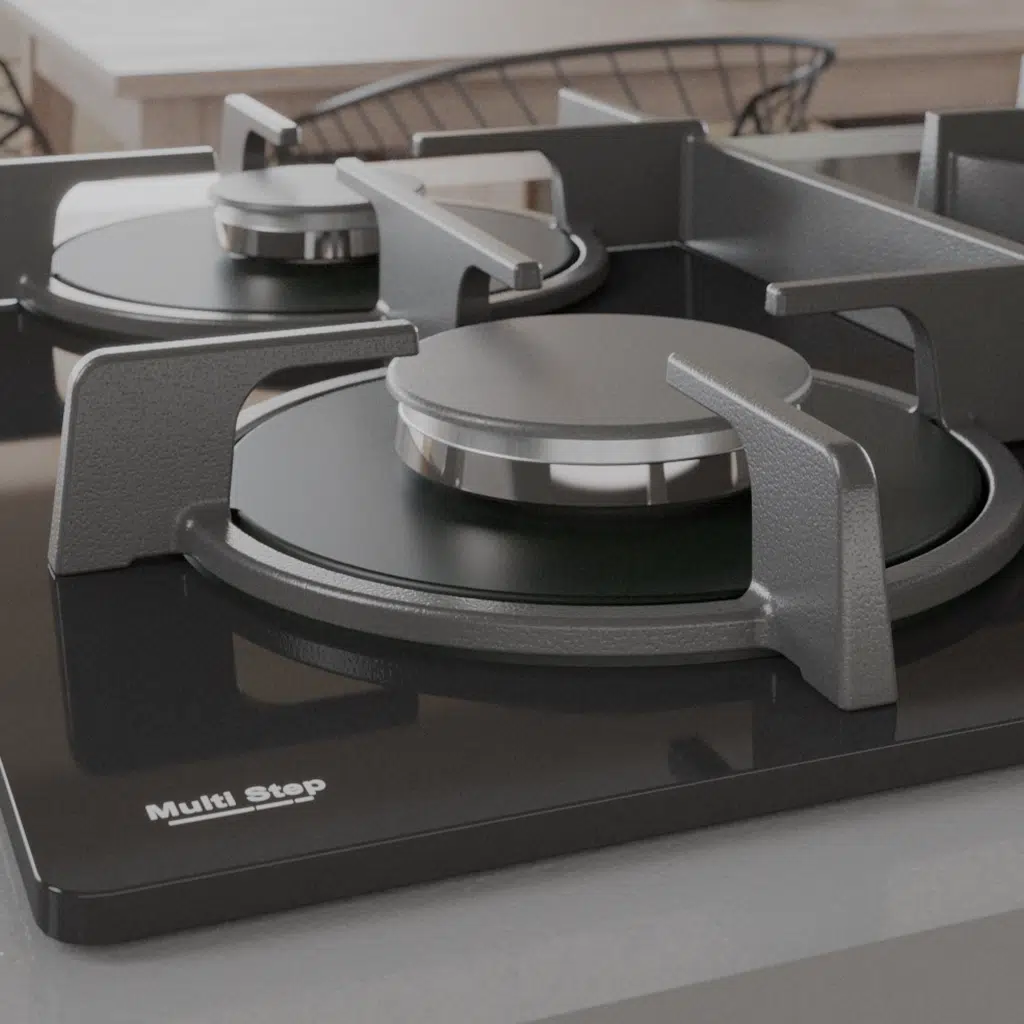 اجاق گاز پنج شعله لئو با استفاده از یک شیر ویژه به نام «مولتیاستپ» طراحی شده است. این شیر از زاویه صفر تا 90 درجه حرکت نرم و دیمری دارد و اجازه میدهد کاربر شعله را به صورت پیوسته از زیاد تا کم تنظیم کند. از زاویه 90 تا 270 درجه، مسیر گردش شیر به 9 مرحله تقسیم شده که بهعنوان 9 استپ شناخته میشوند. ویژگی مولتیاستپ این امکان را فراهم میکند که سرشعله در اندازهها و توانهای حرارتی مختلف ثابت و دقیق قرار گیرد؛ بهطوری که استپ 9 بیشترین توان حرارتی را دارد و استپ 1 نقش گرمنگهدارنده (Warmer) را ایفا میکند.