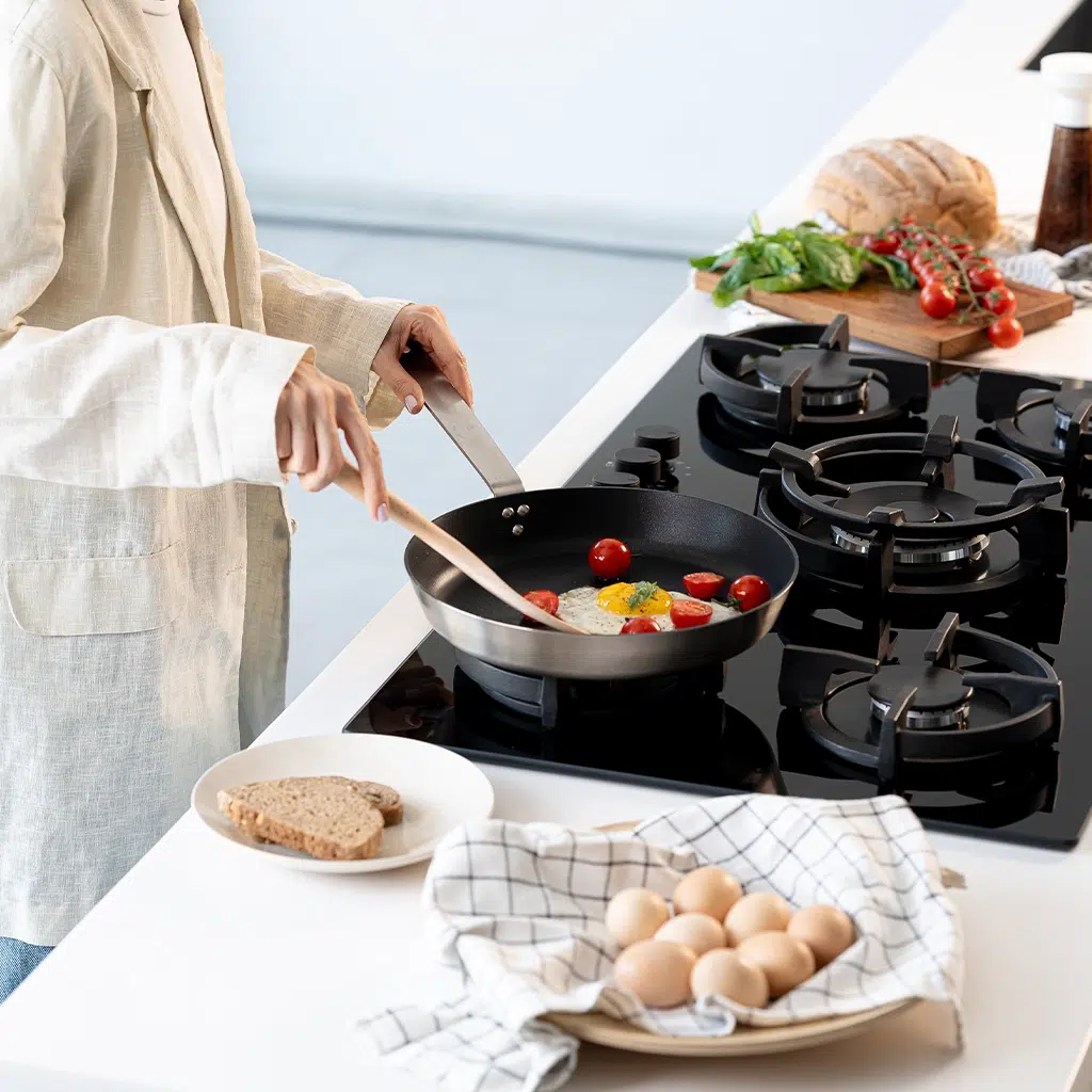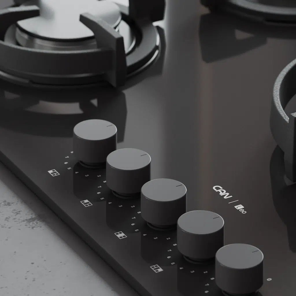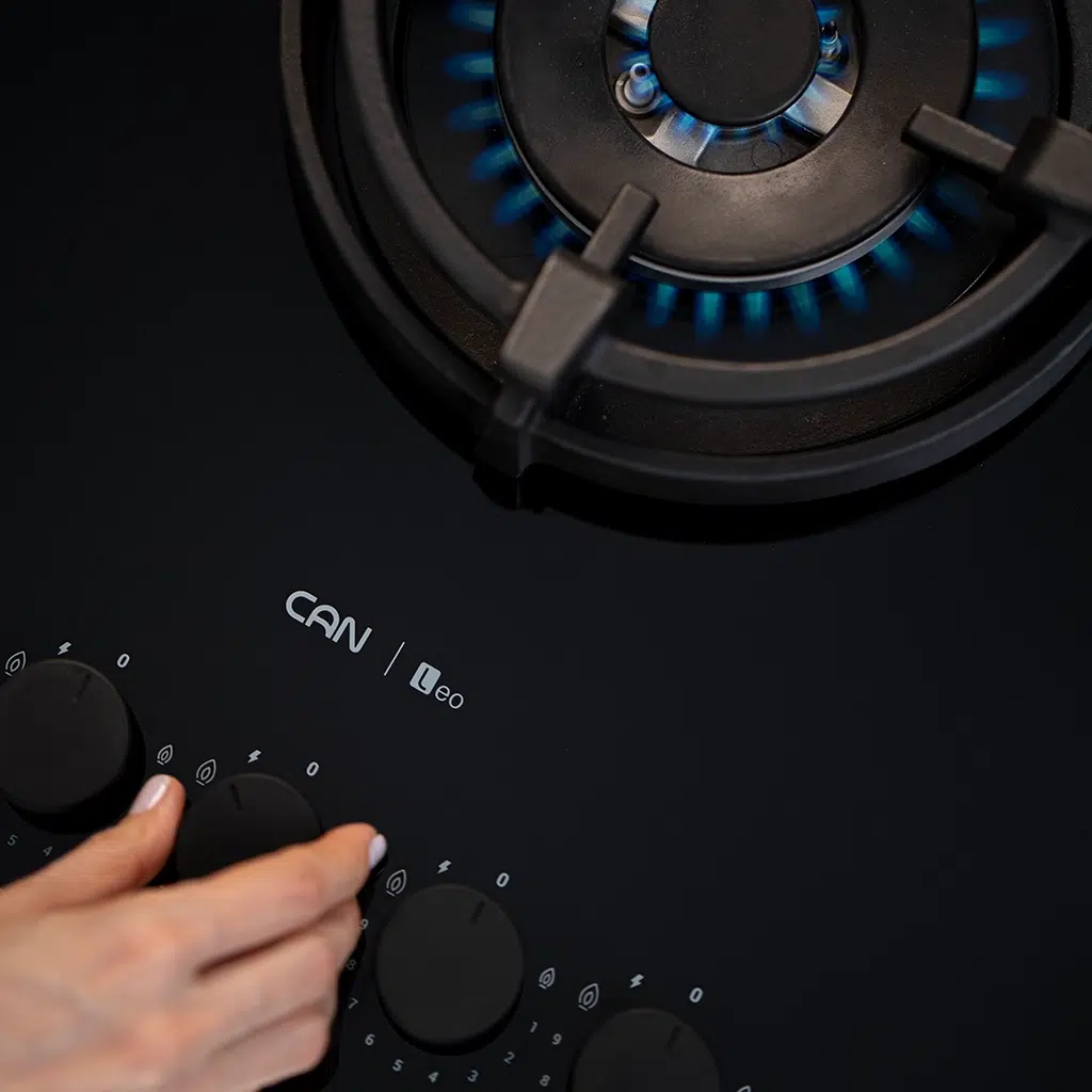 اجاق گاز پنجشعله لئو از برند محبوب کن مجهز به شیر ویژه مولتیاستپ است که از زاویه 0–90 درجه حرکت دیمری نرم و از 90–270 درجه 9 استپ قابل تنظیم دارد تا شعله را هم بهصورت پیوسته و هم مرحلهای با دقت انتخاب کنید (استپ 9 بیشترین و استپ 1 حالت گرمنگهدارنده). شبکههای چدنی جزیرهای با سپرهای حرارتی جلو و پشتی از گرمشدن ولوم و دیوار محافظت میکنند؛ شیر و سرشعله ساخت ساباف ایتالیا، توان کل 11.3 کیلووات، ترموکوپل ارکلی اسپانیا و لوازم جانبی مانند تبدیل پلوپز و قهوهجوش همراه محصول ارائه میشوند.